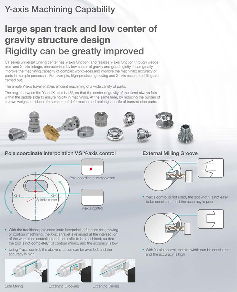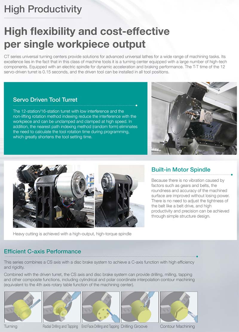 臥式數(shù)控車削中心。主要用于加工軸類零件的內(nèi)外因柱面、圓錐面、螺紋表面、成形回轉(zhuǎn)體面等,對于盤類零件可以進(jìn)行鉆孔、擴(kuò)孔、絞孔、笆孔等加工,另外,還可以完成車端面、切槽、倒角等加工;適用于加工復(fù)雜、高效率、一次裝夾加工成型的工況;