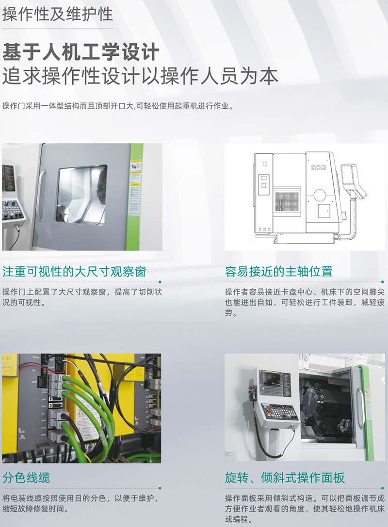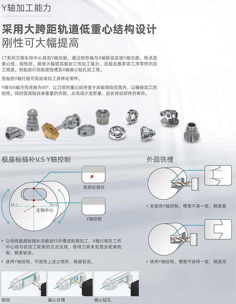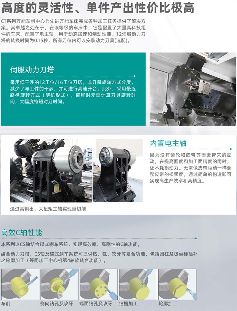 臥式數(shù)控車削中心。主要用于加工軸類零件的內(nèi)外因柱面、圓錐面、螺紋表面、成形回轉(zhuǎn)體面等,對(duì)于盤類零件可以進(jìn)行鉆孔、擴(kuò)孔、絞孔、笆孔等加工,另外,還可以完成車端面、切槽、倒角等加工;適用于加工復(fù)雜、高效率、一次裝夾加工成型的工況;